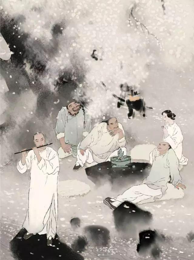 芸娘就雇来集市卖馄饨的,担锅提壶到郊外,用锅炉热酒,用砂壶煎茶,三五好友席地而坐,吃热酒,喝热茶,这样的生活看上去不能再美了吧。