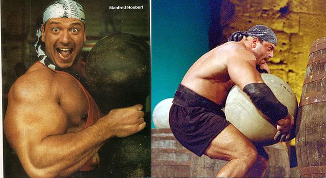 众所周知,健美运动员手臂接近60厘米有很多,比如:罗尼·库尔曼,卢·费里尼奥,施瓦辛格,大萝莉,迈克·马塔拉佐等很多人。但在“科瓦奇时代”之前,奥地利强人曼弗雷德·霍伯尔的肱二头肌曾被认为是世界上最大的武器,他的手臂就像“加农炮”,其周长也达到了惊人的66厘米,但他的手臂形态有点不像训练出来的形态,而一直备受争议,那他曾世界排名第一的手臂,用了药物吗?