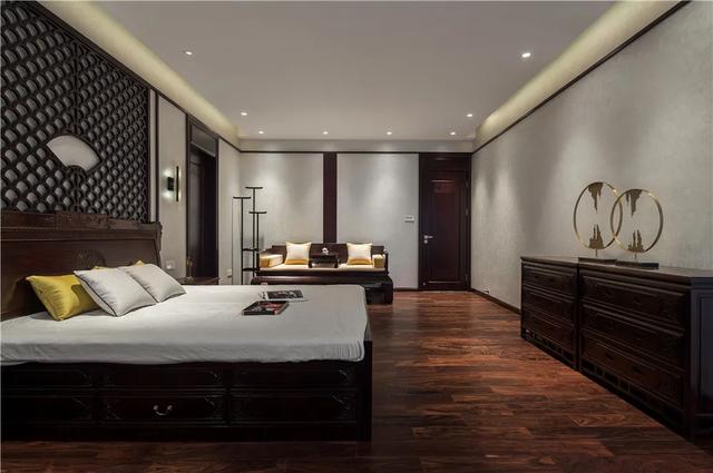 一起一落,你来我往之间,是无言的厮守,更是一场心境的斗争。主卧颜色中选用浅杏色与灰色搭配的主调,黄色作为点缀,与实木(黑酸枝)的结合,沉稳而静谧。清秀的壁灯与窗纱,更显空间质感与素雅。