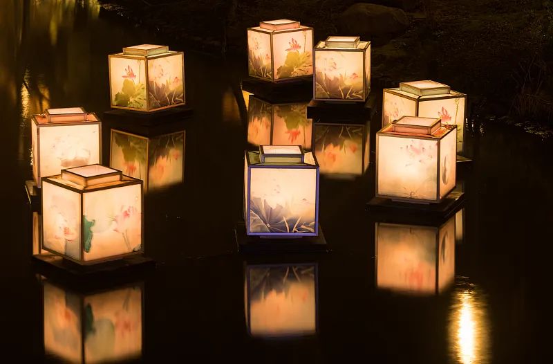 河灯,一般是在底座上放灯盏或蜡烛。处暑前后民间会有庆赞中元的活动,在水中放河灯,任其漂流,悼念逝者,祈保平安。