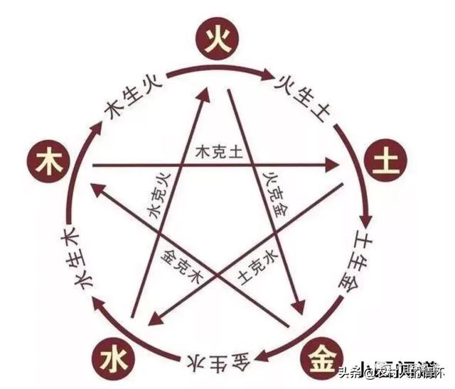 宇宙万物,都由木火土金水五种基本物质元素的运行(运动)和变化所构成。随着这五个要素的盛衰,而使得大自然产生变化,不但影响到人的命运,同时也使宇宙万物循环不已。道德全义:木为仁,火为智,土为信,金为义,水为礼。