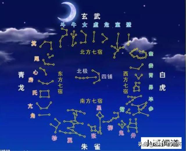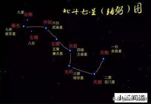 前四颗为魁,勺柄为斗。斗柄指东为春季,斗柄指南为夏季,斗柄指西为秋季,斗柄指北为冬季。