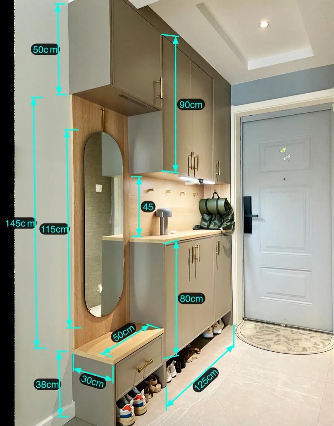 3、进门鞋柜的高度控制也要与个人的使用需求有关,需要看看平常摆放的鞋子数量以及人体的使用需求等,要确保符合自我实际需求。在设计的时候可以提前与设计人员或者自我做好考虑搭配,让鞋柜能够发挥良好效果,更符合实际使用需求,减少出现问题的可能,更利于长久使用。