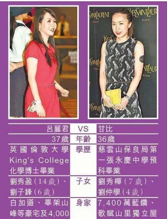 当然,即便是到了这个地步,凭着一对仔女,吕丽君依然在刘家拥有一席之地 ,甚至在2014年,还出现过三人行这样的世纪奇观。
