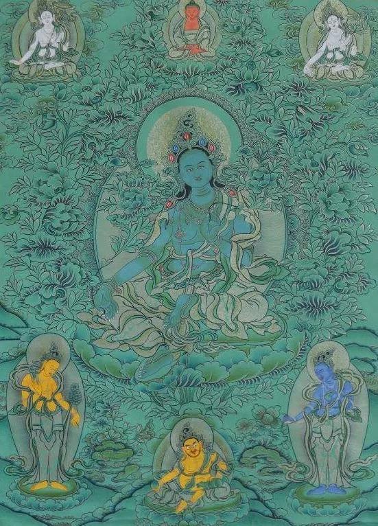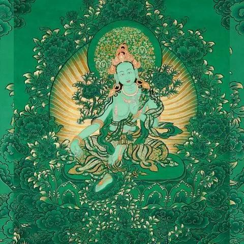 说到绿度母,一些朋友大概觉得有点陌生。观音菩萨普度众生时,因为慈悲众生,于是不禁流泪,而她的眼泪就化身为绿度母菩萨,度母一共有21相,其中绿度母是21相根源。