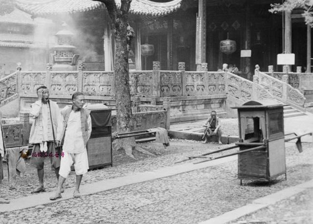 一百多年前的清朝人,面对镜头都缺乏勇气。中间的一位用手遮住了眼睛。对于这种奇巧淫技,愚昧无知的百姓害怕魂被摄走。