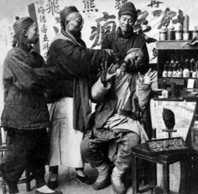 一个街头牙医拔牙的场景,这场面很震撼,估计麻沸散没用,患者疼得要命,张牙舞爪的。真是应了一句话,“牙疼不是病,疼起来就要命”。那时牙医没少治死人!
