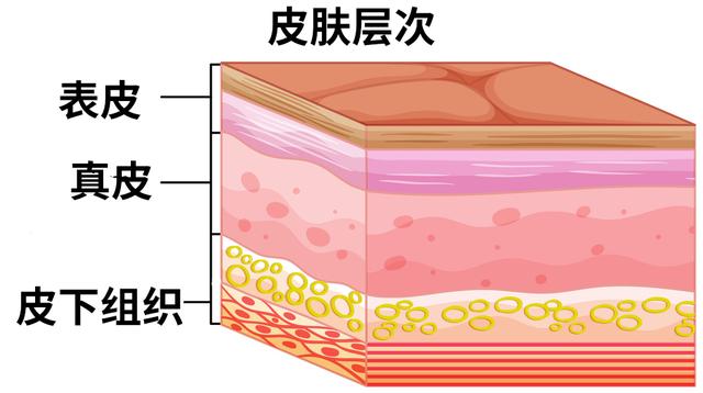 皮肤一共分为三层,由上到下分别是表皮层、真皮层、皮下组织。