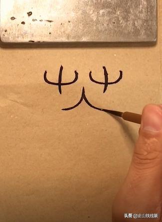 书写时,一定要讲究视觉上的对称,比如写下半部分的“川”,应先写中间。