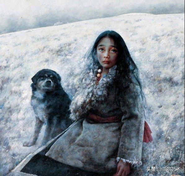 这幅 《风从安曲吹过》创作于1997年,曾参加2000年上海双年展。画面以无际的雪地与苍茫的天空为背景,将一个自然美丽、纯真稚嫩的藏族小女孩置于中心,其略显凌乱的头发,和闪烁着一双“惶恐而又迷茫的大眼睛”,清澈而忧郁。这幅画在2012年10月11日广州华艺国际拍卖有限公司秋季拍卖会上,以667万元成交。艾轩,1947年出生于浙江金华,1967年毕业于中央美术学院附中,。现任中国油画学会常务理事,北京画院油画创作室主任,国家一级美术师。