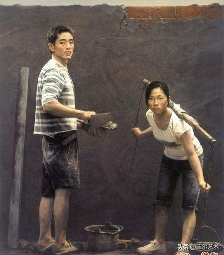 李节平的《小夫妻》生动刻画了一对外来工夫妻工作的瞬间,丈夫沉静而又略带茫然的眼神,妻子呆滞的表情,以及身后面那堵未砌完的水泥墙,都因其质朴、真实而与当今浮躁的社会环境形成极大反差。有专家评价:该画的精神内涵代表了年轻人踏实劳动的形象。2009年6月,油画《小夫妻》入选“广东省庆祝建国六十周年美术作品展览”,获银奖;2009年12月,入选“第十一届全国美术作品展览”并获金奖,成为建国以来广东省首件获此殊荣的油画作品。李节平,四川成都人。1978年12月入伍,1987年四川美术学院油画系进修结业,1991年毕业于北京解放军艺术学院美术系油画专业,1995年调广州军区战士话剧团任舞台美术设计,2005年转业。现为广东画院专业画家。