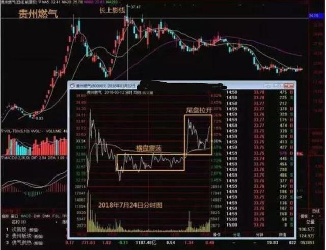 2)一般全天就操作一次,如果此时盘面承接情况良好才会反复操作数次,此后在砸盘的位置维持震荡走势,但通常尾盘会有一次快速拉高的过程,修复K线形态,维持盘面不跌的假象。K线要么是高开带长下影的阴线,要么是带长上下影线的十字线或者小阳小阴线;