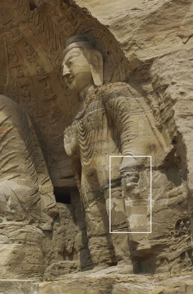 《魏书·释老志》说师贤为文成帝作像“令如帝身”,将拓跋濬脚上的痣也表达出来。昙曜设计监制的文成帝石像,足部已残蚀,不知道有没有那颗痣,也许是彩绘时画上去?