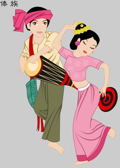 傣族服饰偏淡雅美观,傣族女子讲究衣着,追求轻盈、秀丽、淡雅的装束以及协调的服装色彩。傣族男子的服饰一般都比较朴实大方,上身为无领对襟或大襟小袖短衫,下着宽腰无兜长裤,多用白色、青色布包头。