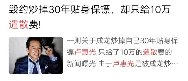 虽然成龙那边也不是要捧红卢惠光,而是让他当保镖,但一分钱难倒英雄汉,当时成龙可是给了相当于安保的双倍工资。