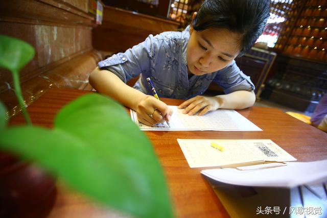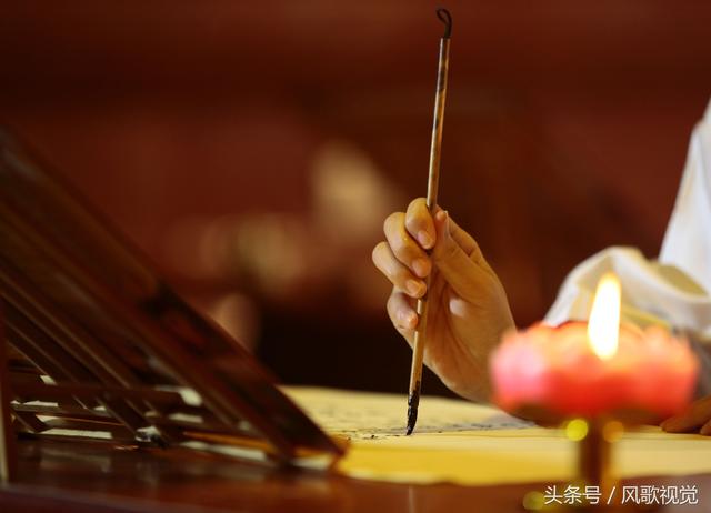 一张方桌、一个蒲团,一支笔,一本经书,一张纸,抄抄写写,心如止水,快乐和智慧慢慢地潜入心中来。