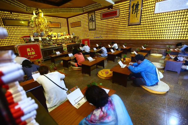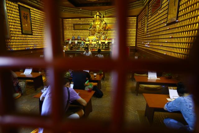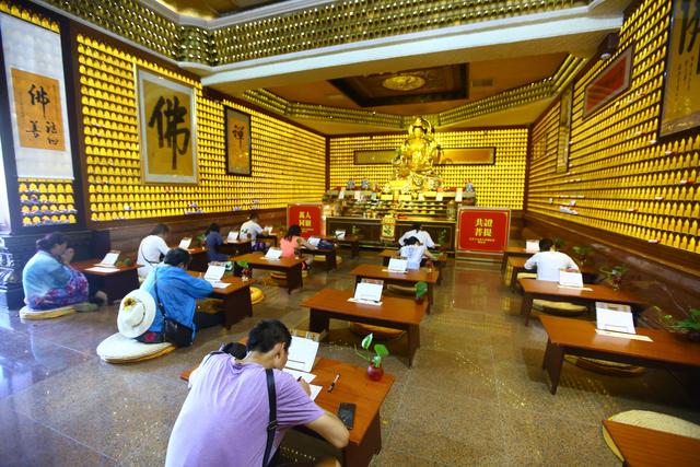 在中国最南端的佛教道场三亚南山寺,有一处大气沉雄的三十三观音堂,除了神圣的三十三尊慈祥的观音化身像让十方善信顶礼膜拜外,殿宇两侧的抄经堂却是净化心灵之处,但常常因人们匆匆的步履、匆匆的心情而忽略。