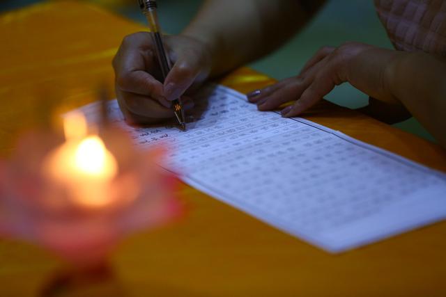 虽然说是一番抄抄写写,但是净心生智慧,有快乐。法师还说,抄经时将整个身心都投入其中,集中精神。断除各种杂念,使心念专注于经文上,达到一心不乱的境界。一心不乱就是定,也可称止,所谓制心一处,无事不办。一心不乱的同时,保持当下的觉照,就是观,一笔一画都要清晰明了,逐渐深解义趣,则是智慧增。