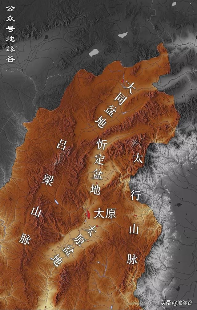 就地理位置而言,太原西、北、东三面环山,中、南部为河谷平原,整体北高南低,呈簸箕形。东边的太行山脉和西边的吕梁山脉作为天然屏障保护着晋中盆地。大同盆地与忻定盆地、晋中盆地之间山川阻隔、地形险要,易守难攻。
