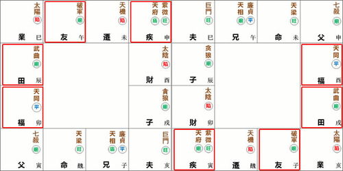 2、“马头带箭”格若是大限逢之,则主十年光彩,事业在辛劳中突飞猛进,有所成就。女命天同、太阴二星安命午宫,若不逢吉星,较安命 *** 辛劳,若有吉星辅照则富足,但以迟婚为宜。加煞星,宜注意健康。