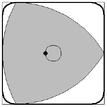 但莱洛三角形毕竟曾属于“有棱有角”的三角形家族,虽然表面圆滑,但骨子里还是非常有原则的,所以莱洛三角形最重要的特性之一就是它的转动轨迹是一个正方形。
