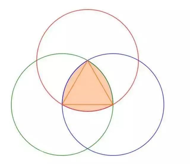 莱洛三角形由三个圆相交得出,三条边皆为圆弧。