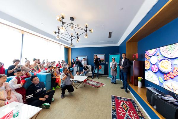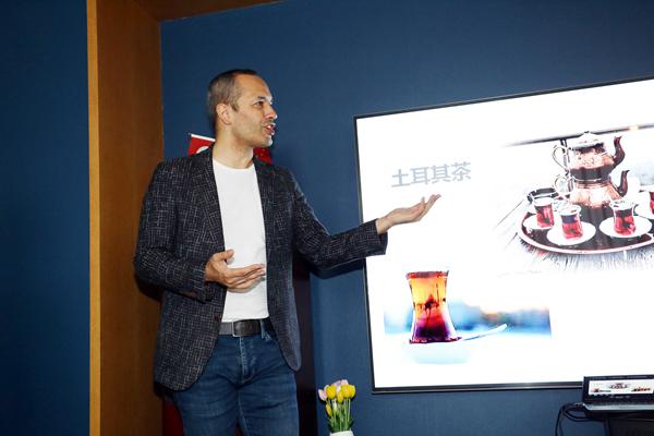土耳其驻华大使馆文化旅游处、尤努斯埃姆雷北京土耳其文化中心主任Ali给小朋友介绍土耳其特色