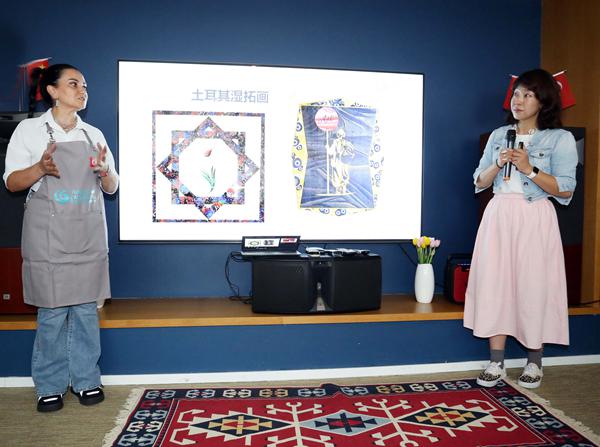 活动特邀土耳其文化旅游部非遗艺术大使ÖZLEM ÇOPUR现场展示了土耳其传统艺术EBRU(纸上水彩画),吸引了众多观众的目光。现场还进行了精彩的艺术表演,展示了丰富多彩的土耳其文化,此外,特色美食和手工艺品也让在场嘉宾深刻感受到了土耳其文化的独特魅力和深厚底蕴。