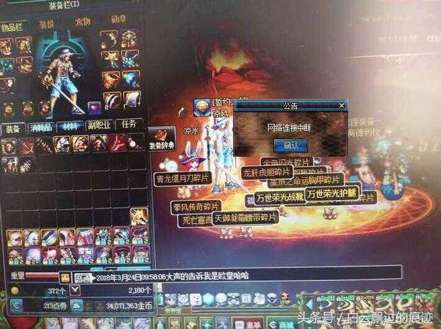 另一个就太自信太搞笑太倒霉了,玩家万世三等二,一把深渊闪光中爆了他所缺的两件毕业万世部位,双黄竟然爆了万世护腿和万世鞋子,玩家这下可得意了,看到自己即将毕业一套万世了,然而这位老弟就有点得意了,竟然不及时捡起来,刚打了一串字想装逼一下让人知道他欧皇缠身的,没想到装逼不成却让他悔恨不已,我都有点担心他的电脑会被他怎样。果然装逼没有好下场,果然六字真言出现也带走了他的毕业梦想,人家是被人偷走的梦想,而他是自己把自己的梦想摧毁了,哈哈哈(原谅我笑疯了)。大家都知道六字真言的实在性,爆出史诗不及时捡起怕的就是这个。