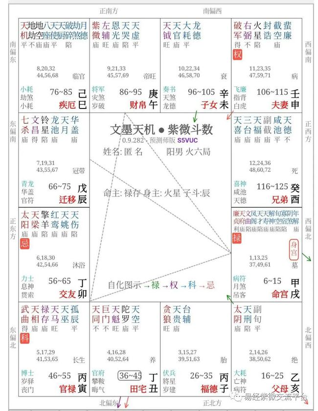 以下图为例,命宫关联的就是官禄宫和财帛宫,把三个宫位内全部星宿汇总才可以判断凶吉,以紫微斗数中的理论单个一个宫位的解释片面不够立体。