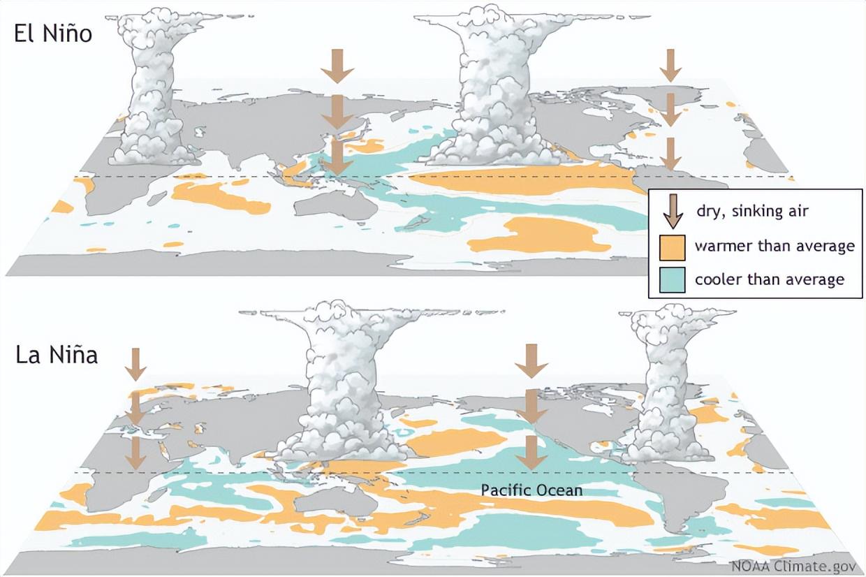 拉尼娜现象的形成主要与热带太平洋的海水温度密切相关。当太平洋中、东部的海表温度比常年偏低时,信风强劲吹拂,加剧海水上下层的温度差异,并使冷水不断向表层翻涌,从而导致海表温度进一步下降。这种冷却效应扩散到全球大气环流系统,最终在北半球冬季影响着我国乃至全球的天气状况。