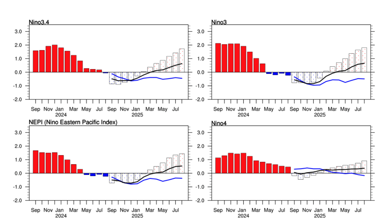 自2024年夏季以来,太平洋中部和东部的海温持续低于常年,表明中性状态逐渐向拉尼娜方向发展。整个8月,热带太平洋的信风比常年更为强劲,使得冷水源进一步堆积。如今,这股冷水正在次表层蓄势待发,预计将在11月前后影响到表层温度,从而激发一次拉尼娜现象。