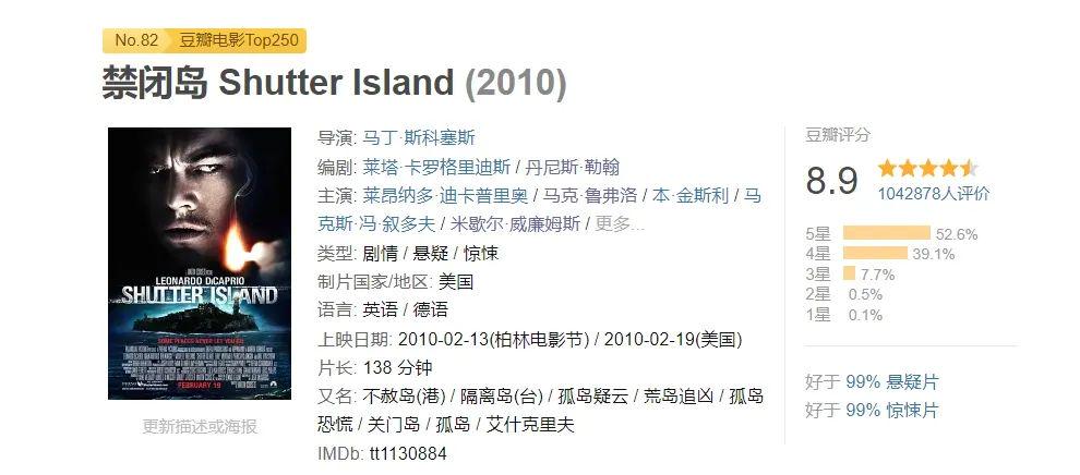 然而我们今天都知道,世界是一个巨大的草台班子。在这个严防死守的地方,一位病人就这么从牢房一样的单人房间里人间蒸发了。作为联邦法警,泰迪的任务就是来到岛上,寻找这位穿墙而去的离奇失踪者。