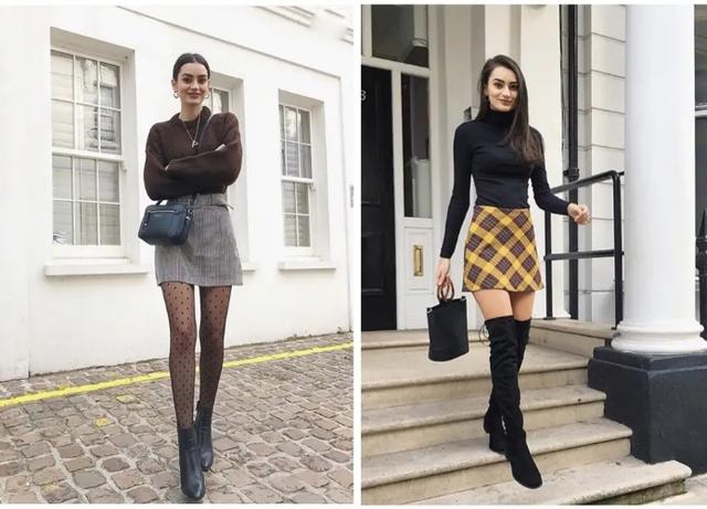 制造腰围:打底衫+超短裙