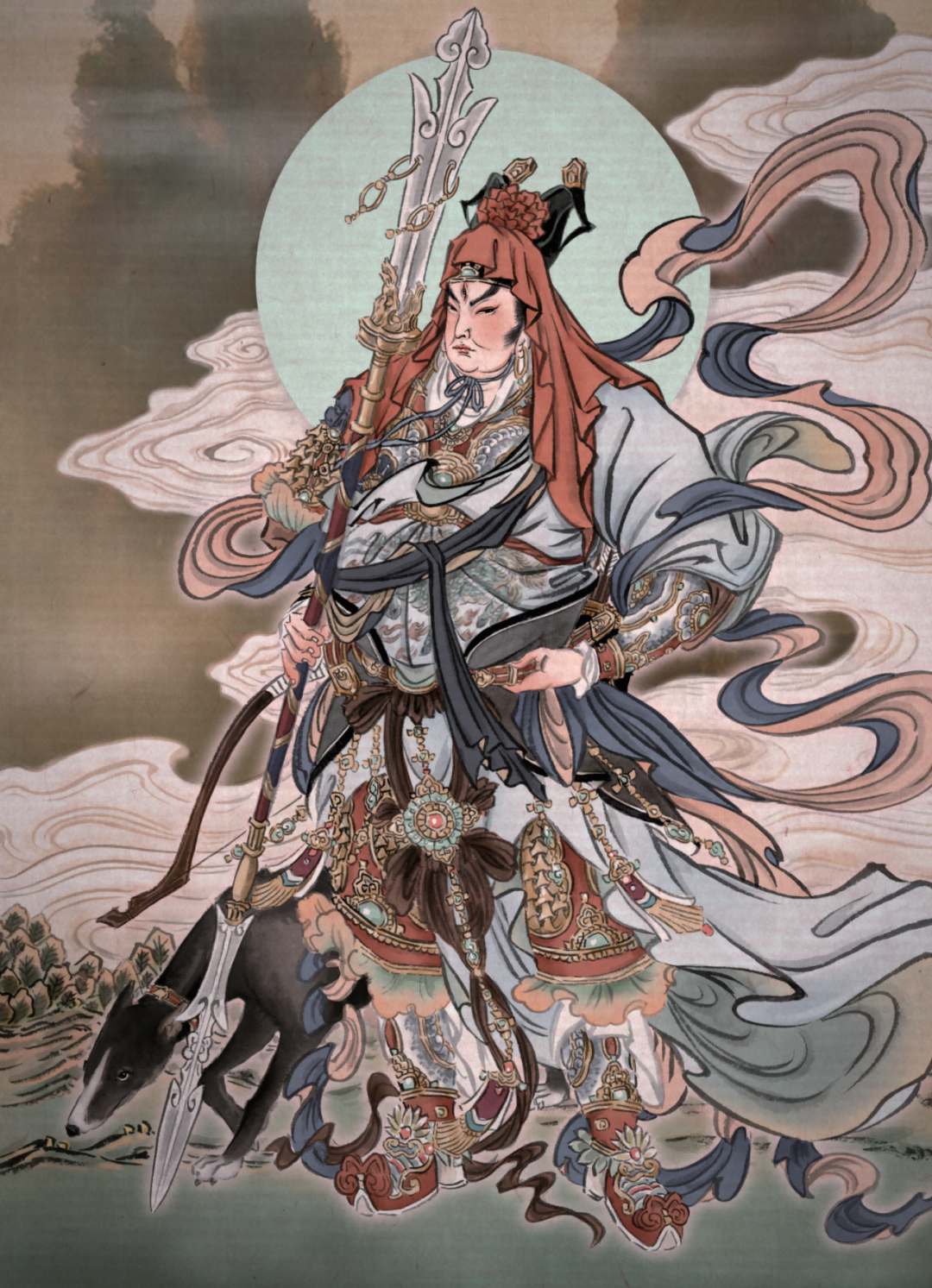 二郎神,又号灌口二郎、灌口神,原型是秦蜀郡太守李冰次子李二郎。传说中他的主要事迹为治水平患,是四川灌县(今都江堰)的地方神,在四川地区影响甚广,后流行于全国。