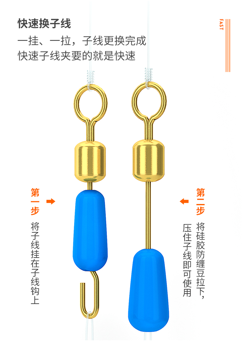 子线最脆弱的地方就是打结处,此 *** 子线无需打结,减少子线被切的机率,大大提高子线的强度。测试证明此绑法不会因为一钩被切而另一个钩也轻易脱落,相反,是越拉越紧!