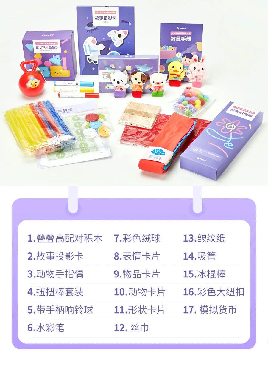 课程会给大家提供 17 种教具,配合视频课使用非常方便,无需再额外购买任何道具,照着视频、搭配赠送的配套教具,每位家长都可以轻松上手。