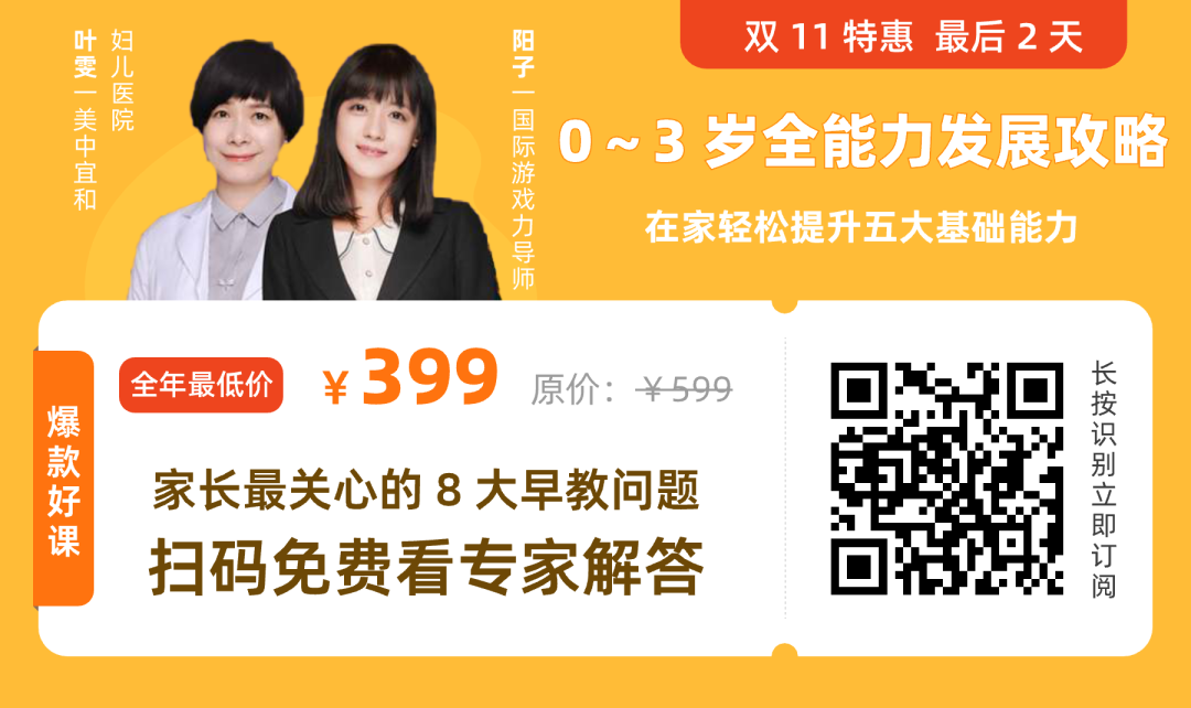 我们找到了儿科主任医师叶雯和清华早教基地的阳子老师,一起设计的课程《0~3 岁全能力发展攻略》,专门面向 0~3 岁宝宝打造,全部都在家里完成。