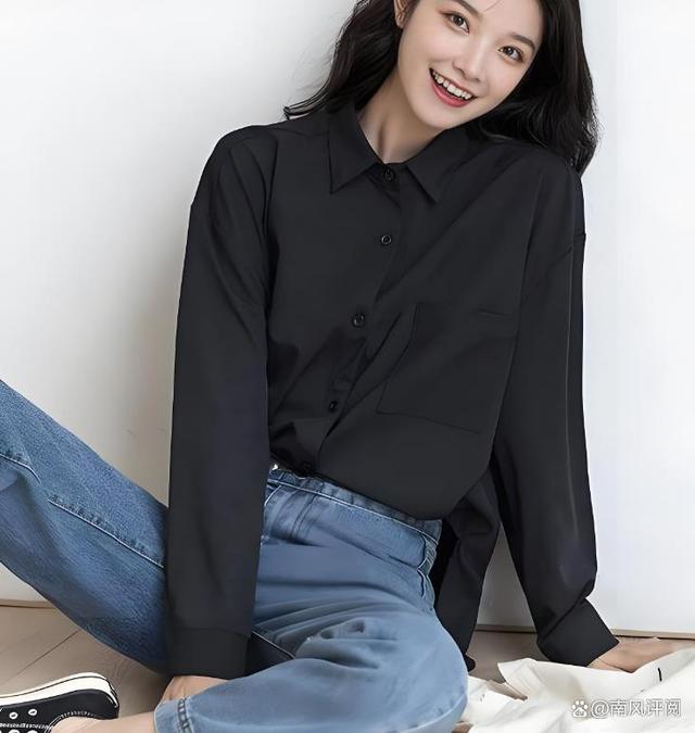 在休闲时光里,黑色衬衫与牛仔裤的搭配则显得尤为随性而自然。一条紧身或直筒的牛仔裤,能够很好地平衡黑色衬衫的正式感,增添一份轻松与自在。此时,你可以将衬衫的领口微微敞开,或是随意地扎进裤腰,都能营造出一种随性而不失格调的氛围。再搭配一双舒适的运动鞋或帆布鞋,就能轻松驾驭各种休闲场合。