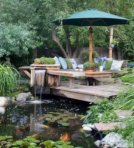 庭院风水禁忌6、注意水池的位置、水的流向中国人自古以来都喜欢选择背山面水的环境盖房子,如果水在住宅后则与基本格局背道而驰,让人在心理上产生一种不安全的感觉。因此,在水的安排上就更加要注重细节上的讲究。若在住宅的正后方设置水池,则不宜深挖地下,而应在地面上高筑池墙以建成水池。